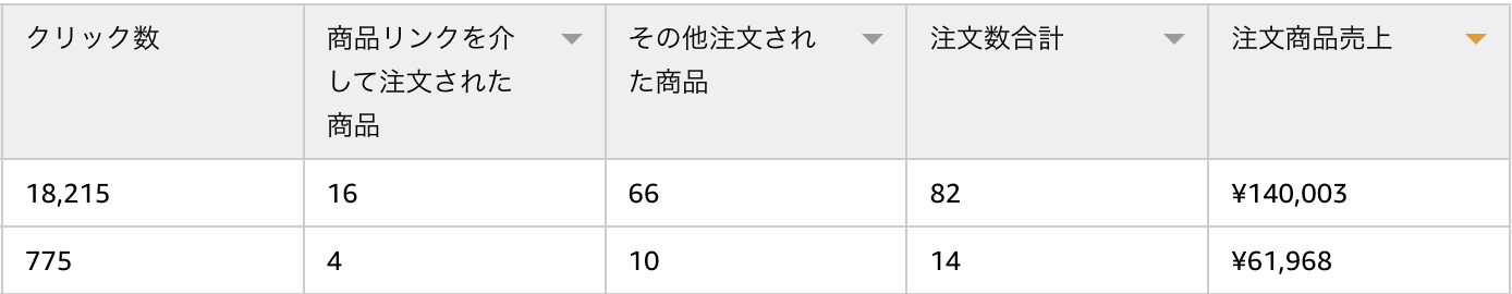 クリック数に対して、売れてる個数と金額が少ないけど、