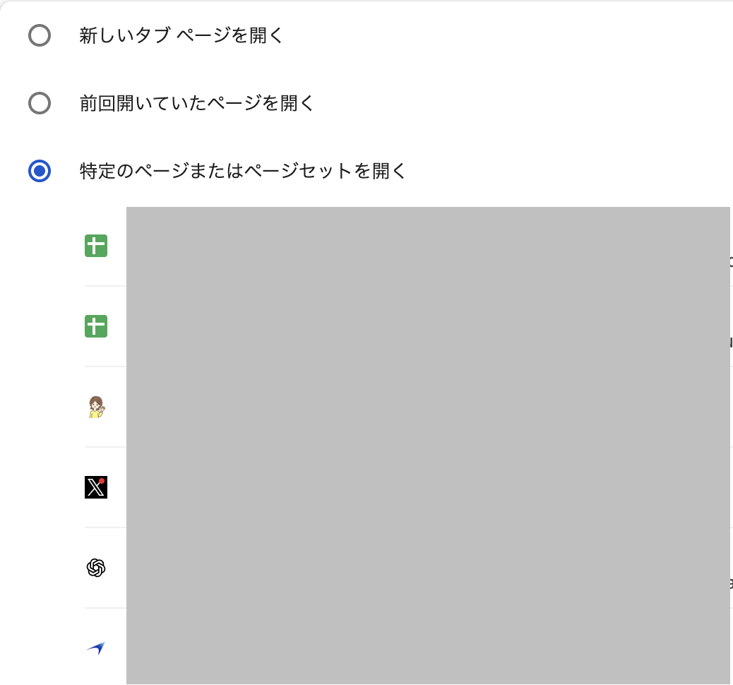 で、特定のページまたはページセットを開くにして、起動時に開きたいページのURLを登録すればOK✨