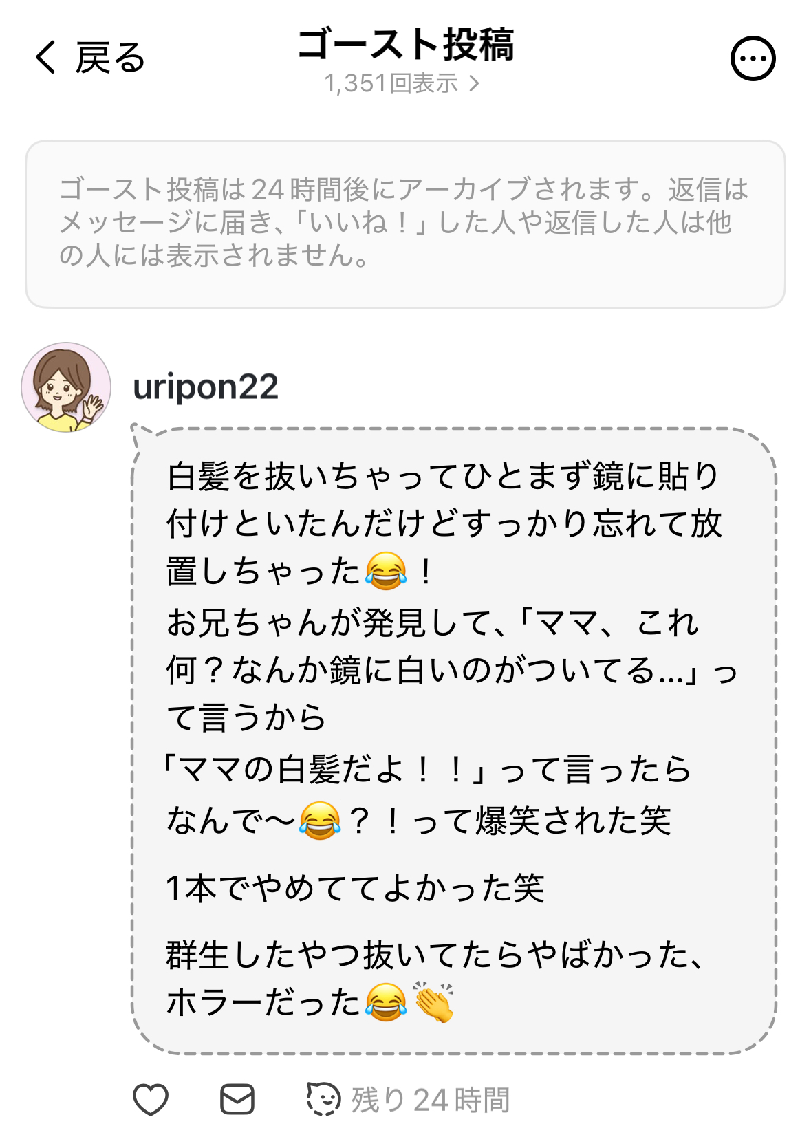 24時間で消えるのをいいことに、超どうでもいいことを呟きました笑