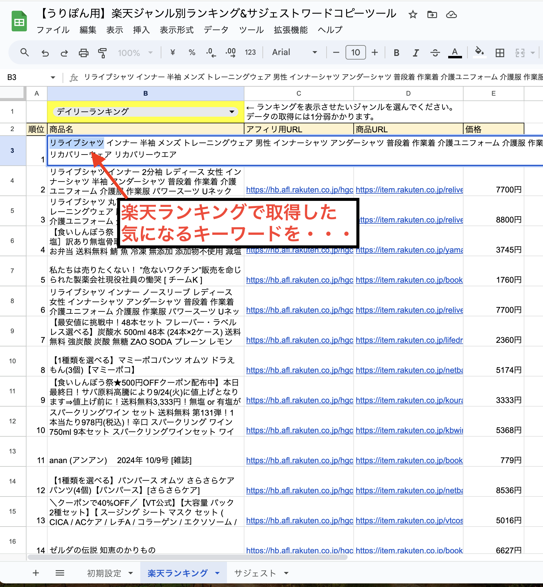 改めて私の特典でお渡ししてる楽天ランキング取得ツール、サジェストワード検索ツールを使ってみたの!
