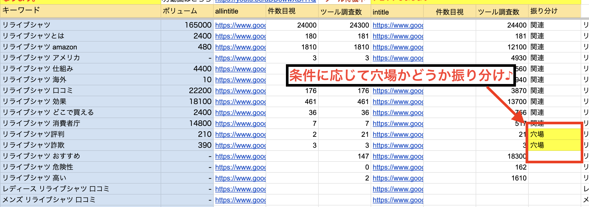 そんで秘密のツールを使うと細かい検索ボリュームも調べられちゃって、しかも1個1個ボリュームを入力してるんじゃなくて、コピペで反映させてるんだよ〜(出た!コピペ大好き人間笑)