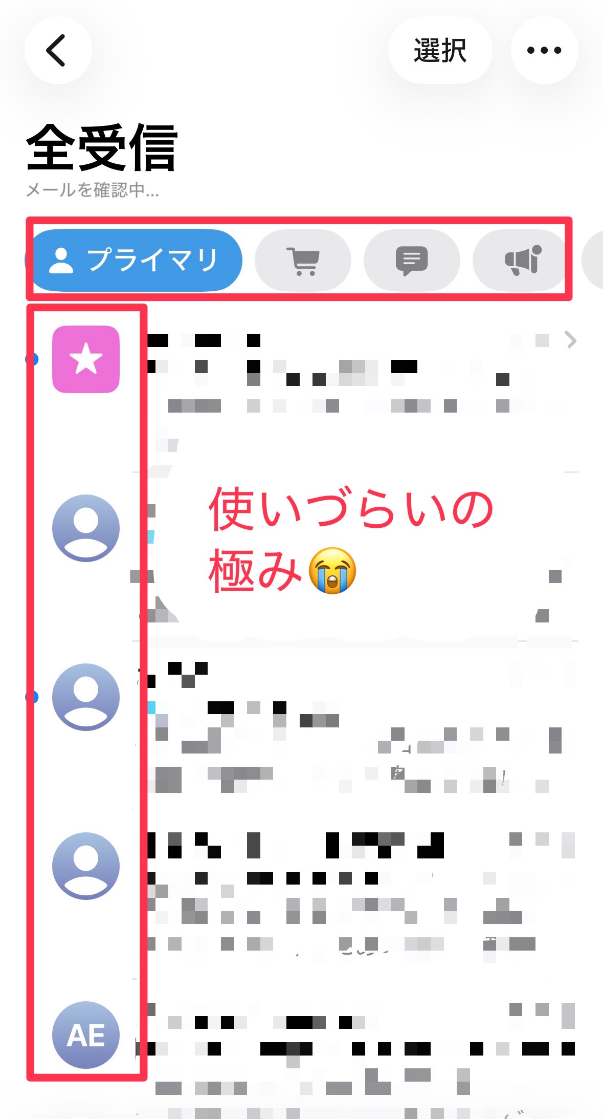 メールボックスが勝手に分類されて、