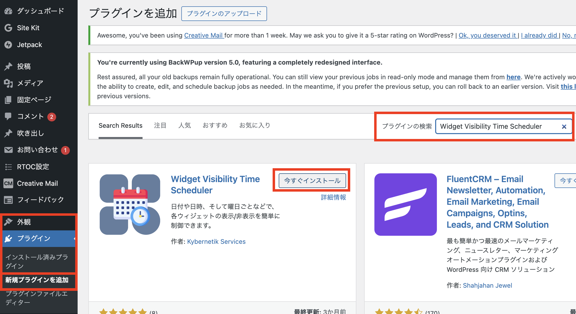 プラグインの検索窓にWidget Visibility Time Schedulerwと入力する
