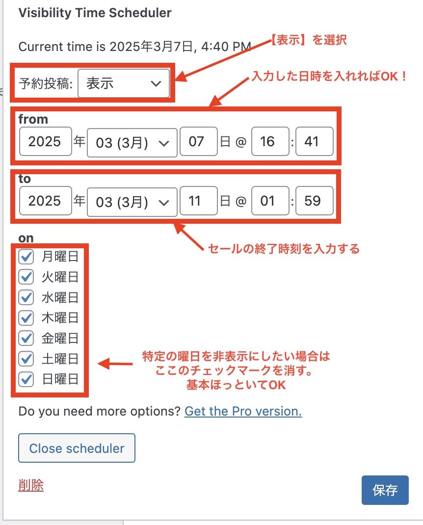 画像のように、表示させたい日時の設定ができるようになっています♪