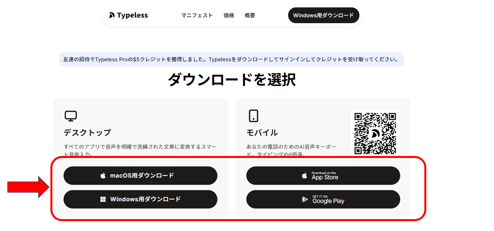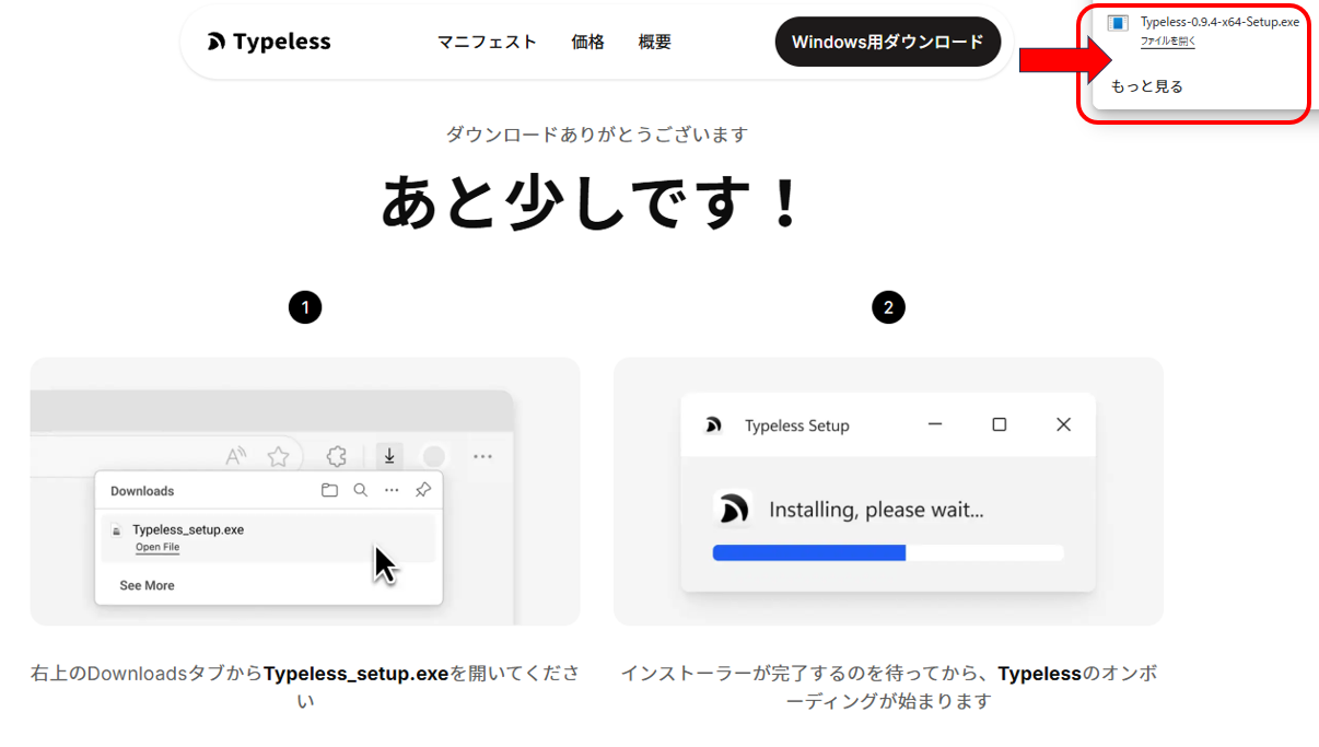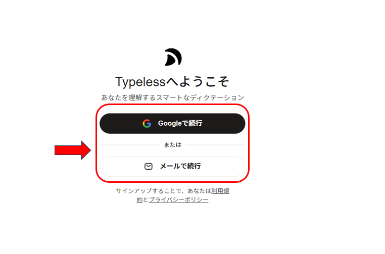 まずはTypelessの公式サイトにアクセスします。