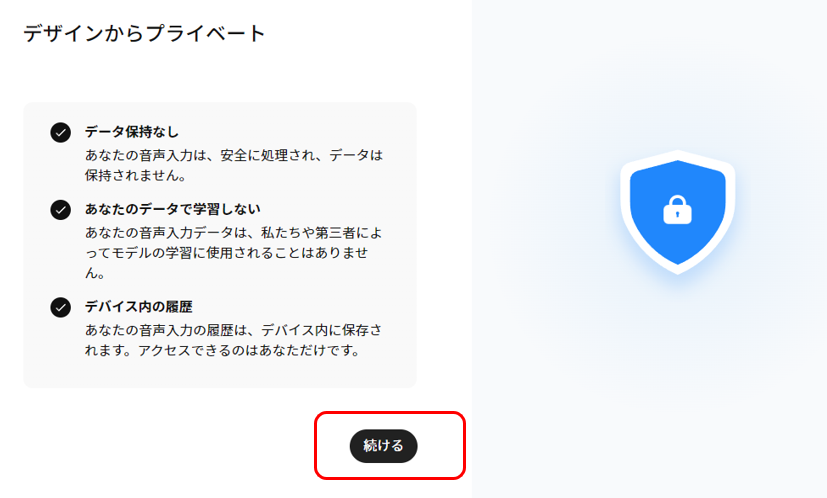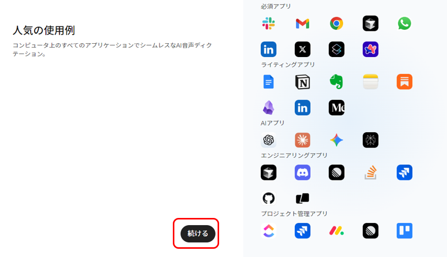 下記画面が出てくるので内容を確認して「続ける」をクリック