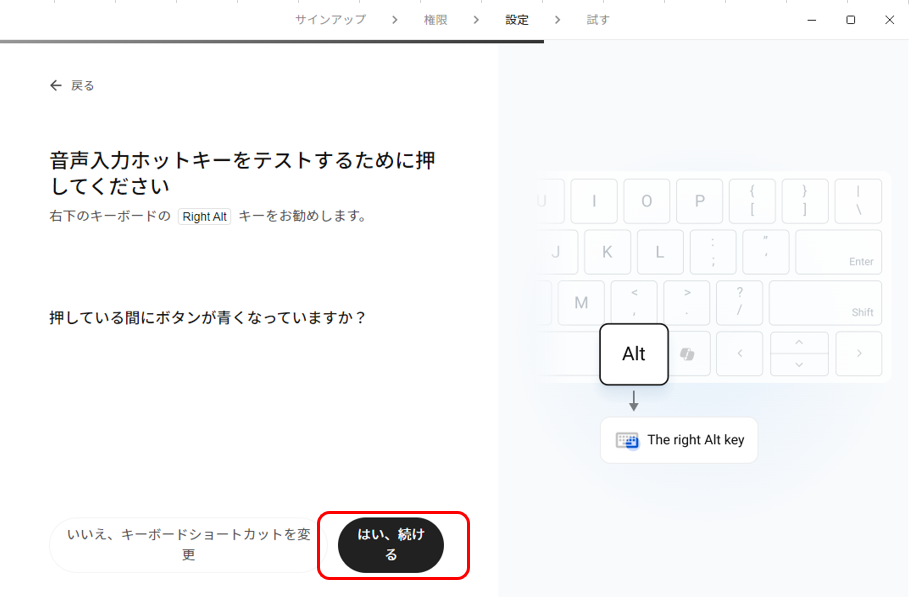 キーボードの右側にある「Alt」キーを押して