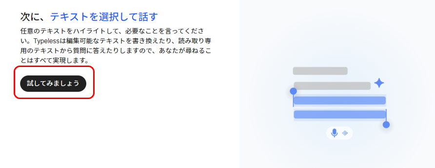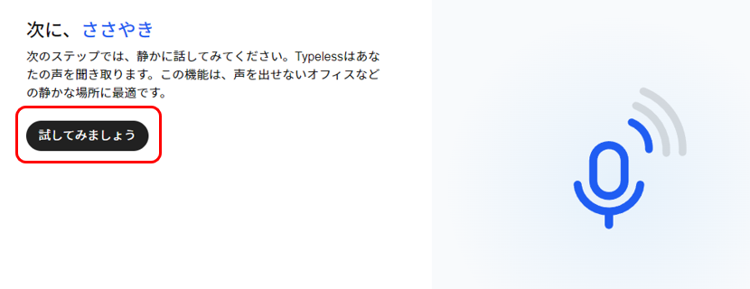 Typelessに声を登録していきます。