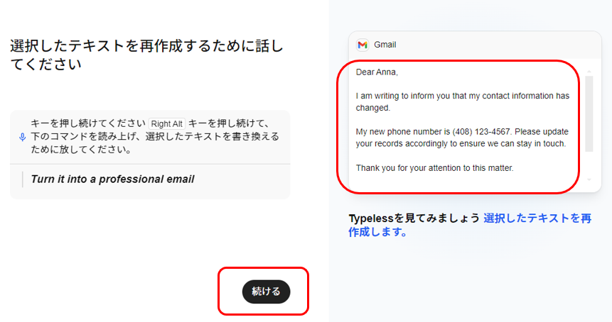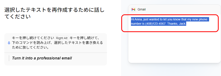 「Turn it into a professional email」と
