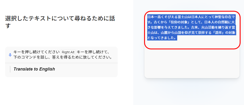 文章を選択してから音声入力