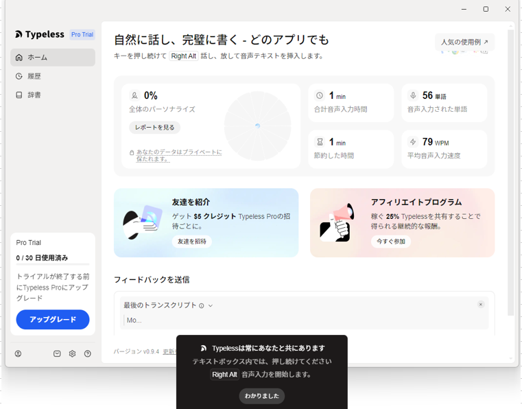 音声入力ツール「Typeless」です。