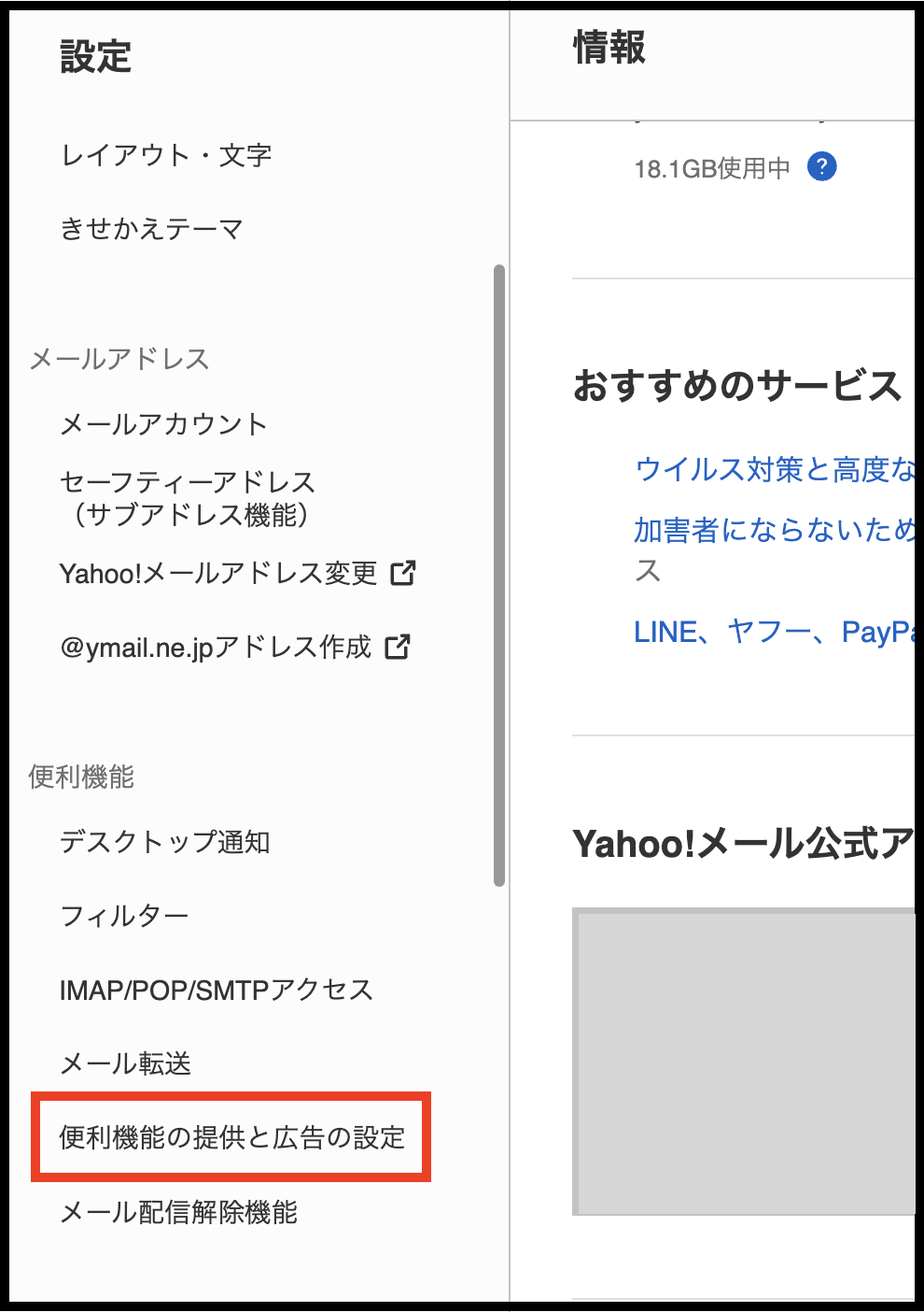 少し下にスクロールし、「便利機能の提供と広告の設定」をクリックします。